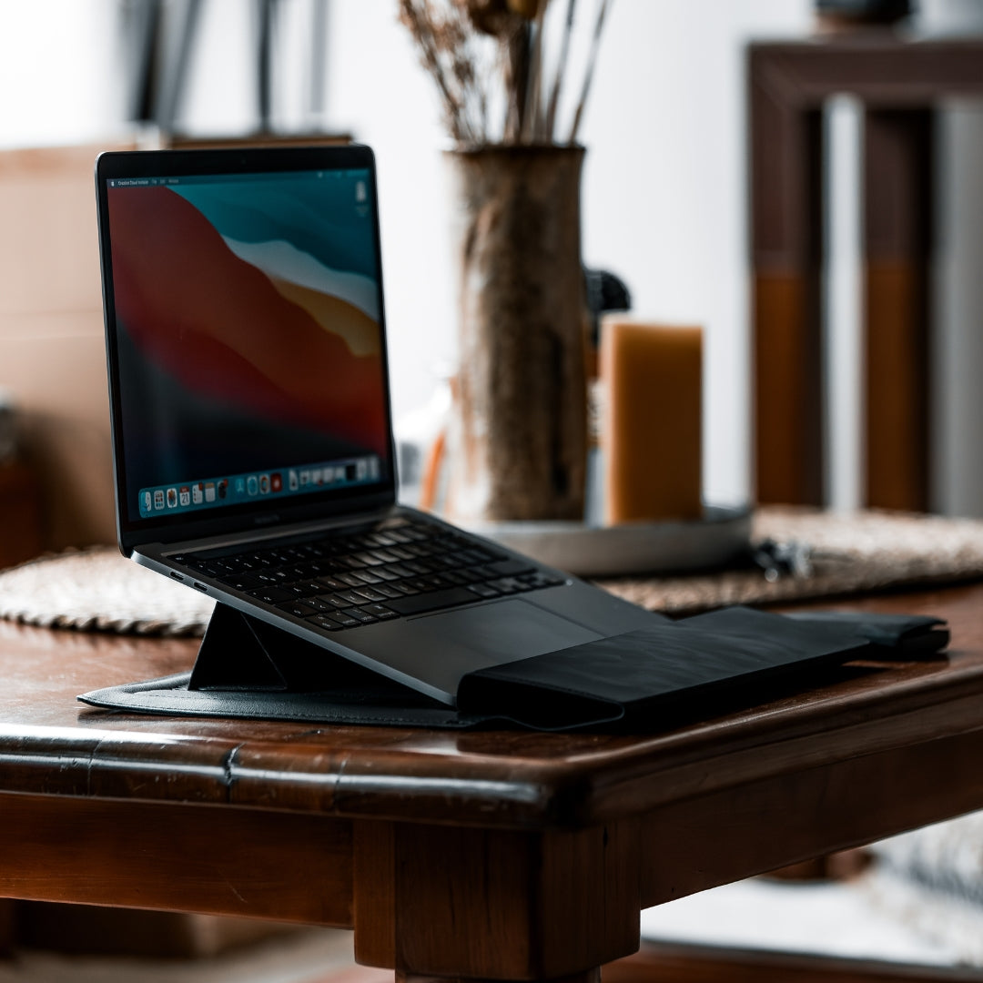Excepcional, moderno y estiloso. Nuestras fundas para Notebook o tablet se convierten en cómodas estaciones de trabajo permitiendo una mejor postura y mayor ventilación para tu computador. Un 2 en 1 que te ahorrá espacio y protegerá tu computador en todo momento.